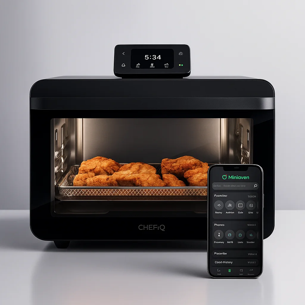 Love tech in the kitchen? Go for the CHEF iQ MiniOven. It pairs with an app so you can monitor cooking from your phone, use guided recipes, and even adjust temperatures mid-cook. Great for busy multitaskers.