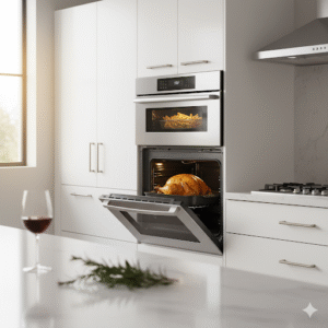 A microwave-convection combo is a single unit that works as both a standard microwave and a convection oven. While it won’t fully replace a full-size wall oven for large holiday meals, it can handle daily baking, roasting, and reheating tasks, making it a practical space-saving alternative for most households.