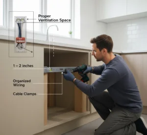 Wall ovens can weigh anywhere from 100 to 200 pounds. Always add wooden blocks or metal brackets beneath the cabinet base to prevent sagging. A sturdy foundation ensures the oven stays level and secures a key step when learning to install wall ovens step by step for long-term durability.