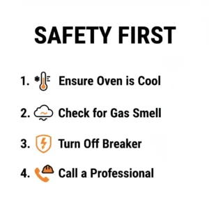 | Oven won’t turn on | Check outlet, breaker, and cord | Still dead after power confirmed |